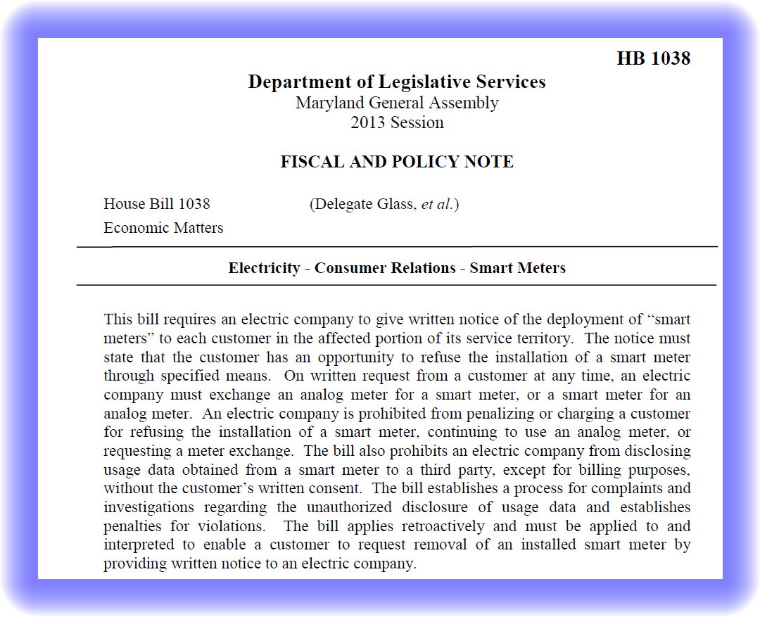 Garic Schoen, a Maryland resident, submitted testimony to the members of the Economic Matters Committee on March 14, 2013, the date of the HB 1038 “Smart Meter Opt Out without Penalty” hearing. Mr. Schoen experienced adverse health effects following a Smart Meter installation, as documented by his doctor and physical therapist. Upon removal, those adverse health effects were substantially diminished.